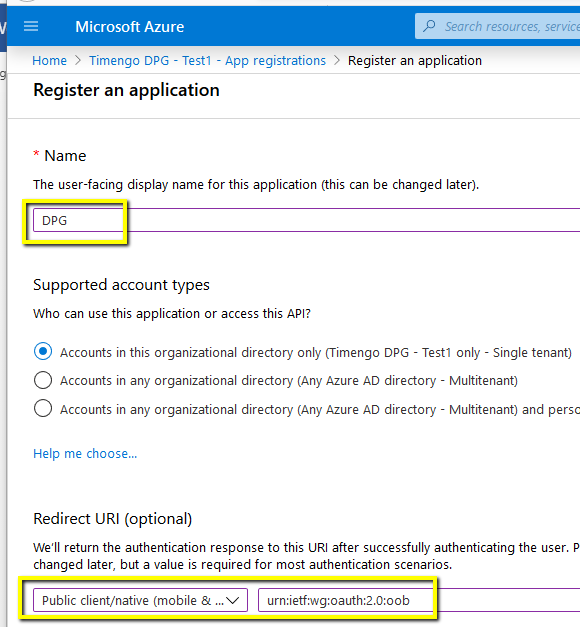 Note that this process needs only to be done once, during the initial configuration and delivery. After this is done, you should not make changes to the app registration unless instructed by Timengo DPG Support.