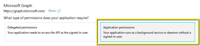 Go to API permissions and select Add a permission. Click Microsoft Graph, and then Application permissions.