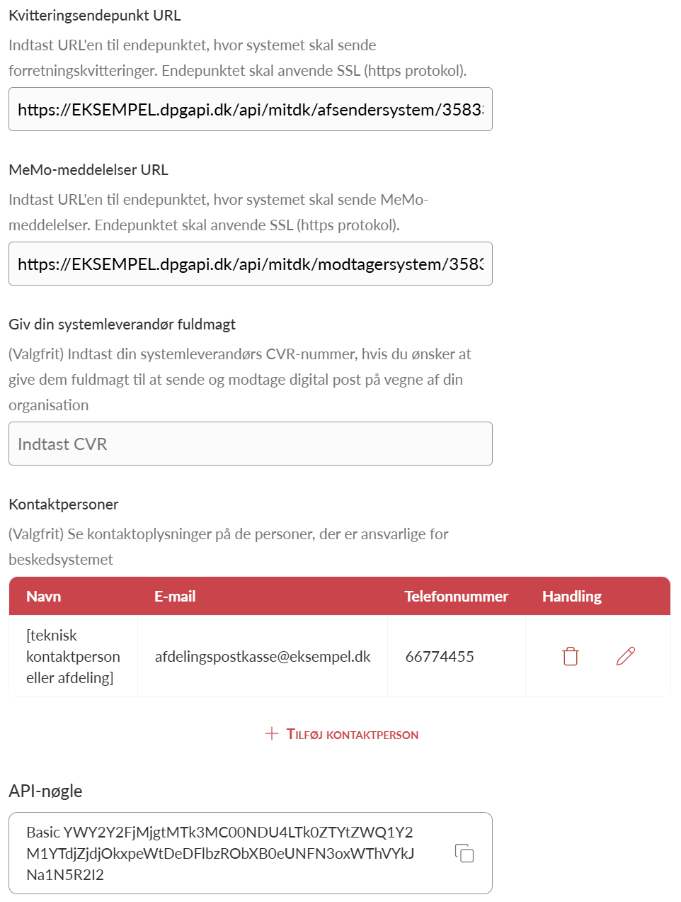 - Kopier til sidst værdien i feltet API-nøgle. Den skal du sende til DPG, så DPG-løsningen kan klargøres.