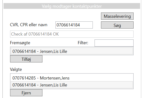 Let at sende til mange mit.dk-modtagere på én gang (Masselevering). Indsæt blot en liste af modtagere, eller upload modtagerliste fra en fil: