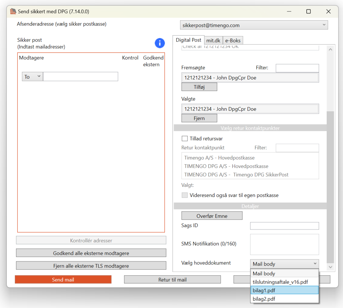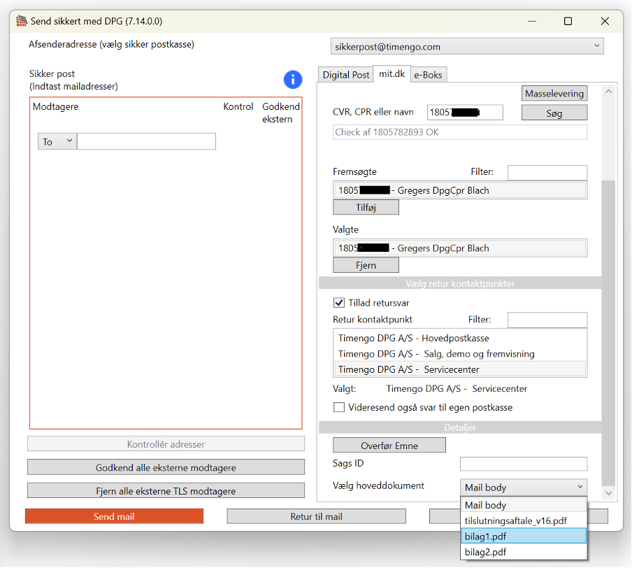 Det er nu muligt for afsenderen at vælge, hvilket af de vedhæftede PDF-dokumenter i en besked, der skal benyttes som hoveddokument.