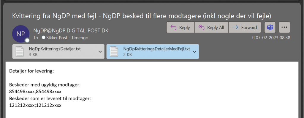 Sendes der til mange modtagere i samme Digital Post-besked, vises detaljerne på eventuelle fejlede afsendelser i en separat fil med navn NgDPKvitteringsDetaljerMedFejl.txt