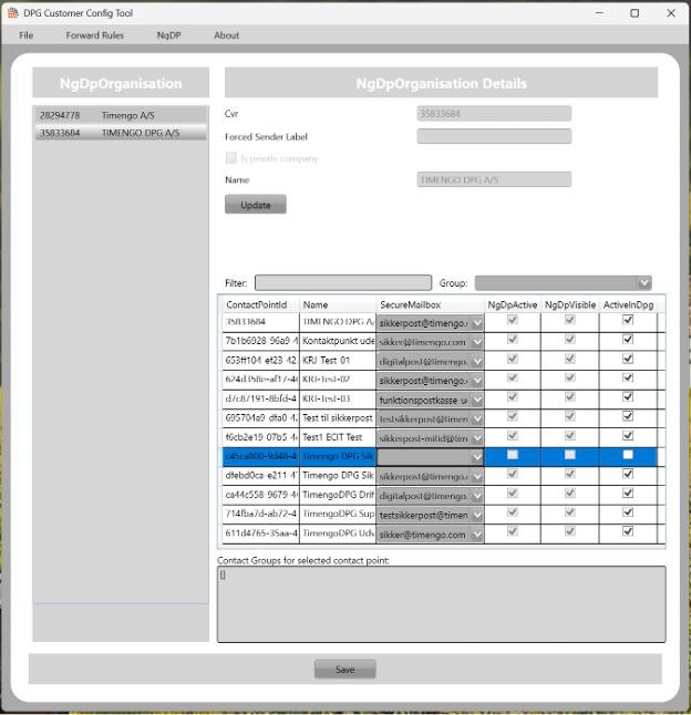 Nogle offentlige afsendere af Digital Post har mange kontaktpunkter. For at gøre vedligeholdelsen af disse kontaktpunkter i DPG-løsningen nemmere, har vi gjort det muligt for kunder selv at knytte kontaktpunkter til funktionspostkasser via DPG Customer Config Tool.