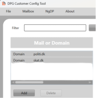 Det andet fokusområde i Customer Config Tool er, at det for hver organisation er muligt at oprette lister med forhåndsgodkendte domæner og mailadresser i forbindelse med Mail Guard.