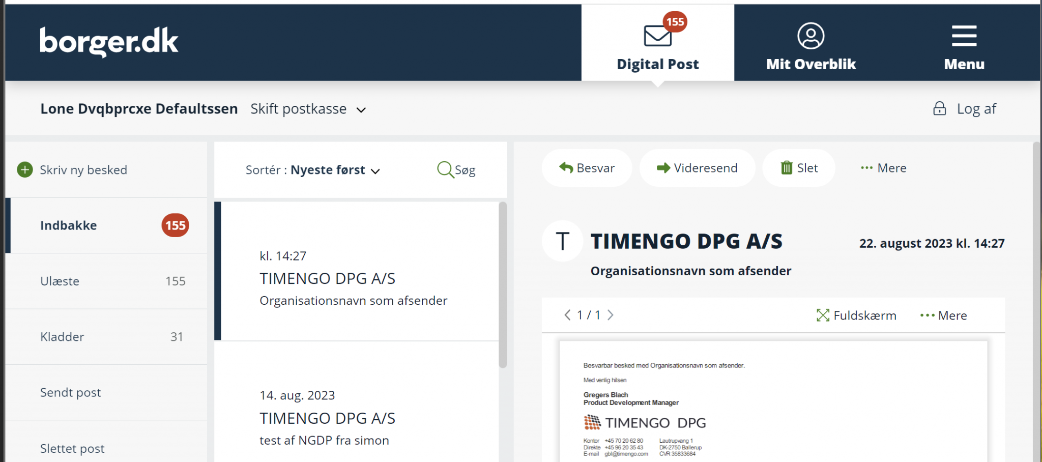 Eksempel 2 ovenfor vil se således ud, når den modtages i borger.dk: