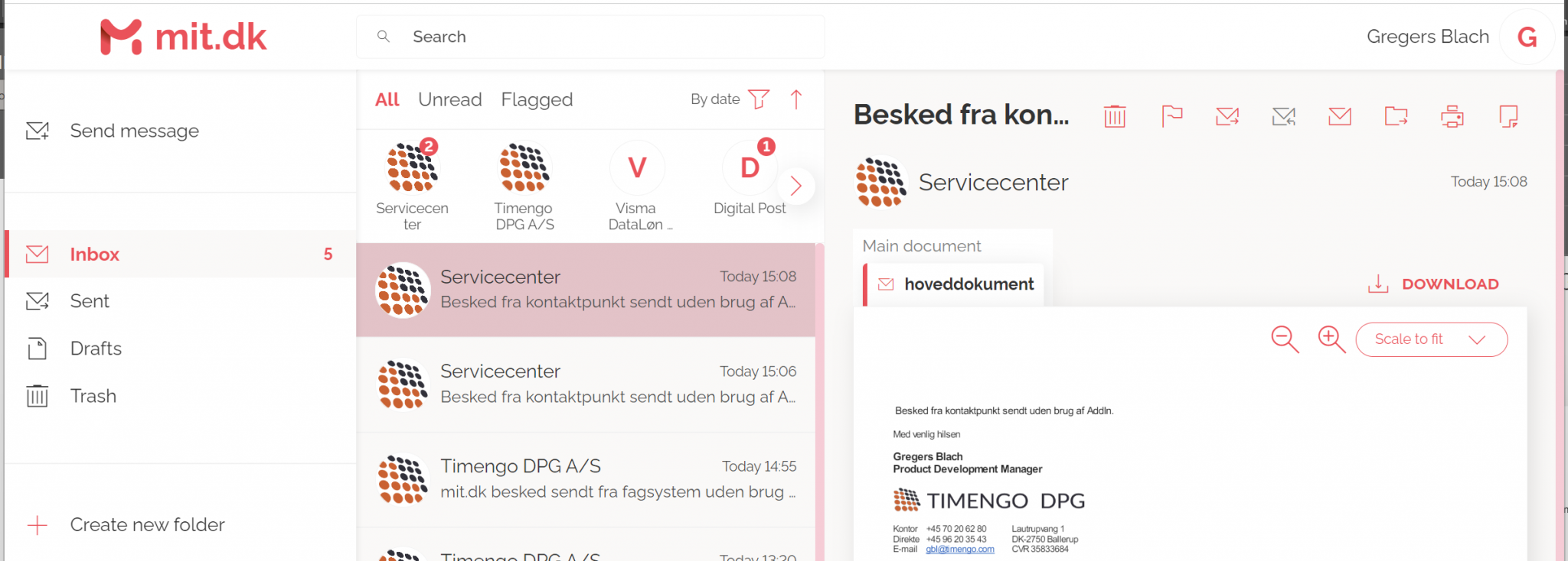 Eksempel 2 ovenfor vil se således ud, når den modtages i mit.dk: