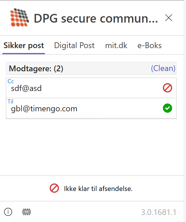 Som det fremgår, er der 1 gyldig mailadresse og 1 ugyldig mailadresse, og mailen er ikke klar til afsendelse.