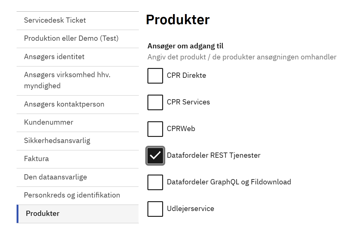 When you have received a case number from CPR's service desk, you must apply via virk.dk.