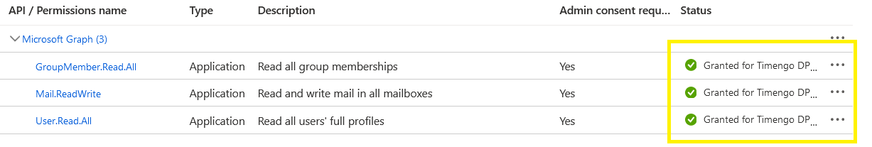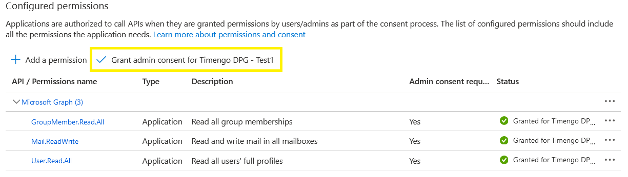 Note that this process needs only to be done once, during the initial configuration and delivery. After this is done, you should not make changes to the app registration unless instructed by Timengo DPG Support.
