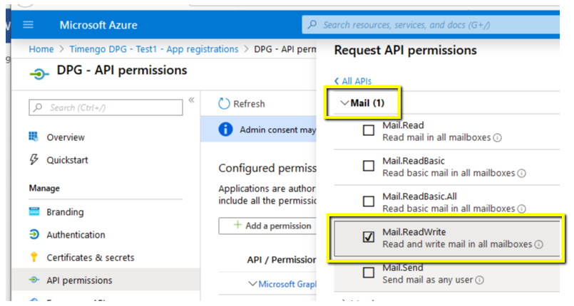 Mail.ReadWrite. - Go to the section User, and select