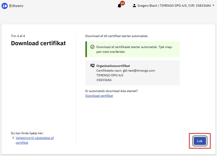 You can find detailed information from MitID Erhverv about how to order and download organization certificates here: