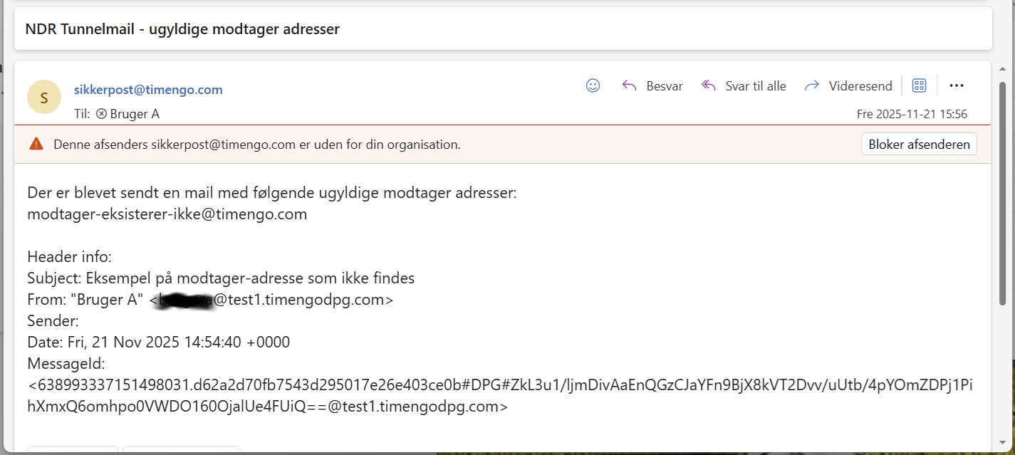 NDR message for unknown tunnel mail